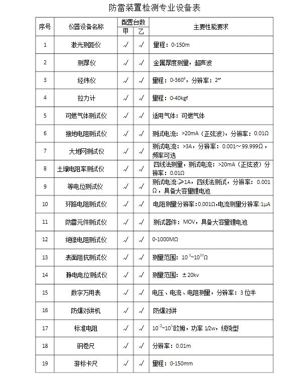 泰安防雷泰安檢測設(shè)備量具(皮尺、鋼直尺、鋼卷尺、卡鉗、千分尺、螺旋測微儀、游標(biāo)卡尺、激光測距儀、測高儀、經(jīng)緯儀)。工頻接地電阻測試儀、沖擊接地阻抗測試儀、土壤電阻率測試儀、鉗形接地電阻測試儀(單鉗型回路電阻測試儀)、地網(wǎng)型接地電阻測試儀、多功能接地電阻測試儀。絕緣電阻測試儀(兆歐表)、環(huán)路電阻測試儀(N-PE環(huán)路電阻測試儀)、絕緣/導(dǎo)通測試儀、數(shù)字微歐表、毫歐表、過渡電阻測試儀、等電位測試儀。數(shù)字萬用表、鉗形電流表、漏電電流測試儀、電力諧波鉗形表、諧波分析儀、漏電開關(guān)測試儀、電力質(zhì)量綜合檢測儀、低壓電器綜合測試儀、頻譜分析儀。