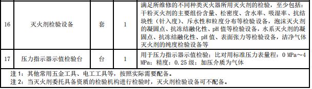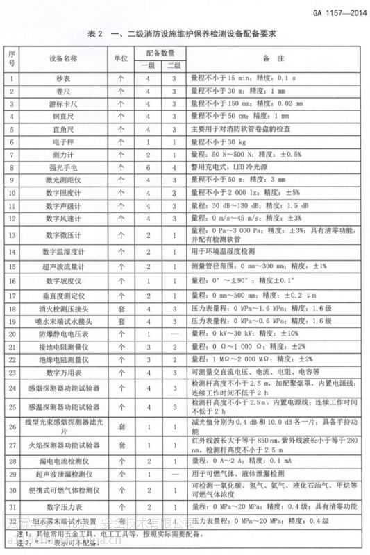 一二級消防設施維護保養中山檢測設備用于建筑消防設施的維護、保養和檢測,其設備配備的種類和數量至少應滿足表 2 的要求