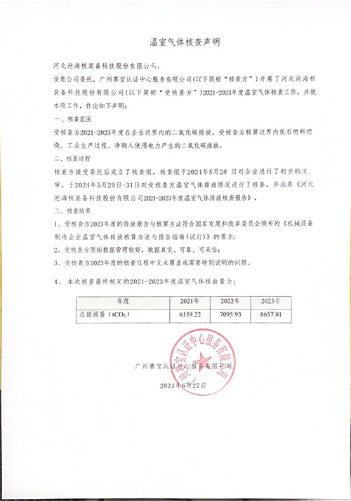 溫室氣體核查-河北滄海